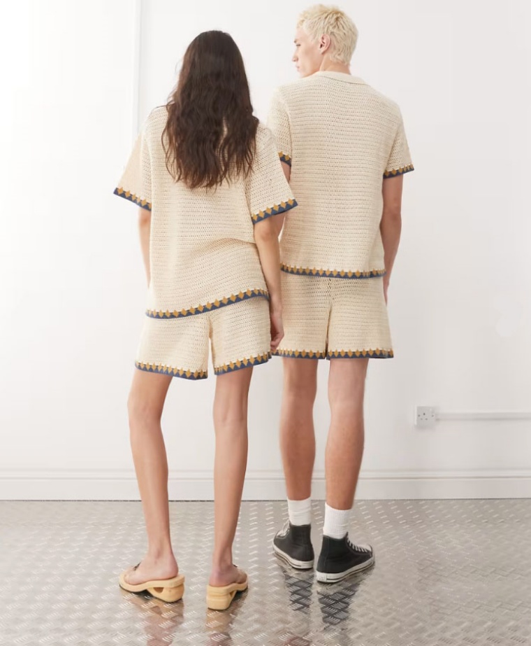 This unisex knitted set includes a crochet mesh cardigan and high-waisted shorts, crafted from a 60% cotton and 40% acrylic blend. Key design elements include handcrafted crochet patterns, a drawstring-equipped high waist on shorts, contrasting borders for cohesion, and a relaxed fit for all-day comfort. Sizing spans XS-XL, with consistent fit across sizes to simplify inventory management and reduce returns. The set falls under the unisex handcrafted knitwear category, ideal for retailers focusing on inclusive fashion, casual essentials, or artisanal apparel. Its versatile aesthetic ensures seamless integration into diverse retail assortments—from boho boutiques to minimalist lifestyle stores—while the coordinated design caters to shoppers seeking hassle-free, cohesive outfits.