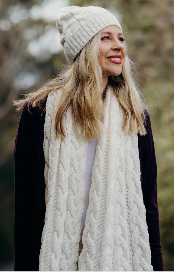 Designed for accessory retailers, fashion boutiques, and winter wear curators, this merino wool cable knit beanie and scarf set redefines winter essentials with a perfect fusion of timeless style, luxurious warmth, and versatile appeal. As a coordinated duo, it offers retailers a high-value, giftable option that simplifies merchandising while meeting consumer demand for both functionality and elegance. Crafted from 100% superfine merino wool, the set aligns with the rising trend toward premium, natural fibers in cold-weather accessories—resonating with discerning shoppers who value comfort, durability, and sustainable choices. Ideal for holiday gifting, everyday winter wear, or layered styling, it fills a crucial niche in winter accessory assortments. Its classic cable knit design and harmonious aesthetic position your retail brand as a curator of thoughtfully crafted, high-quality pieces that stand apart from generic winter offerings.